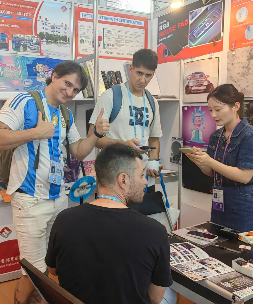 Since 2018, many trusted customers have visited us one after another. We warmly showed them around our office in Nanjing and our factory in Guizhou, and answered users' questions about rubber products such as mouse pads and yoga MATS. The next day, Tony Lee warmly invited them to dinner.
